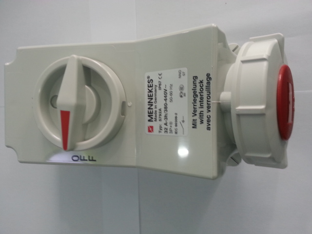 Mennekes IP67 CEE Wall Mounted Receptacle Switched with Mechanical DUO-Interlock  Model # 5792 32 Ampere 4 poles 400 Volts 3H